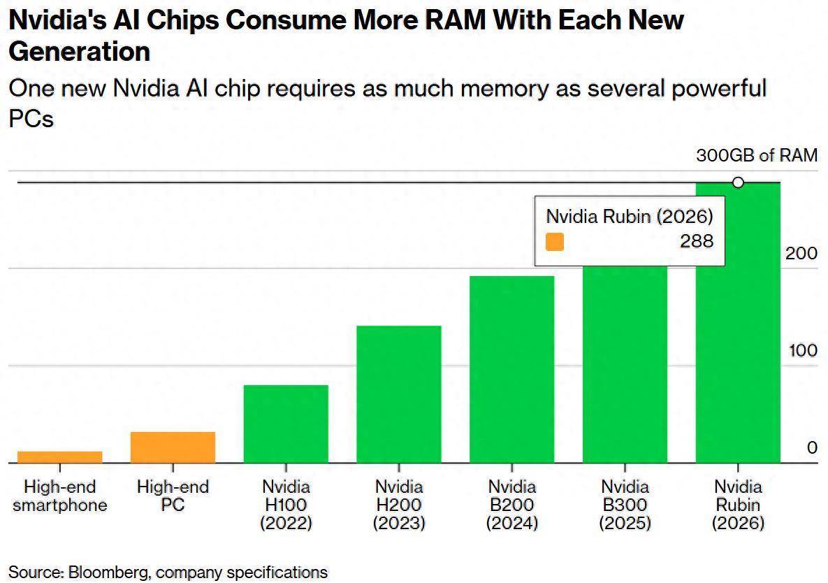 英伟达最新的AI芯片所需的内存相当于大量高性能PC的内存