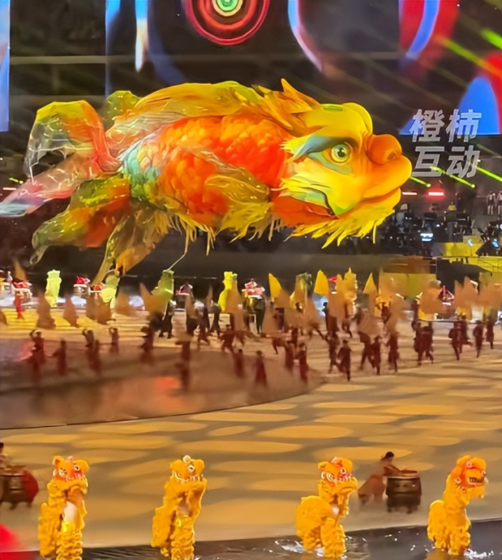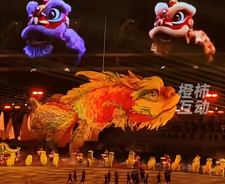 没有任何钢丝、钢线支撑,全靠科技的“大鱼海棠”,逼真的让人不敢相信,神龙摆尾、破空而出,巨型锦鲤与地面醒狮共舞,场面震撼。