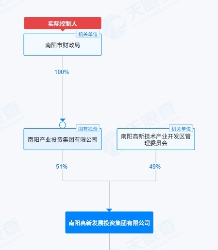 天眼查App显示,南阳高新发展投资集团成立于2002年6月,注册资本10亿元,经营范围包括房地产开发经营、非煤矿山矿产资源开采等,南阳产业投资集团、南阳高新技术产业开发区管理委员会分别持股51%、49%,南阳市财政局为其实际控制人。2025年3月26日,中诚信国际赋予南阳高新发展投资集团AA主体信用评级,展望稳定。
