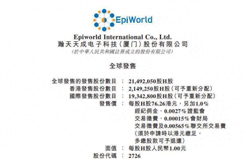 日前,瀚天天成(02726.HK)发布公告网上在线炒股配资,公司计划全球发售2149.205万股H股,招股期为3月20日至3月25日,每股发售价定为76.26港元,每手买卖单位为50股,募资总额达16.39亿港元,预计将于3月30日正式在港交所上市。