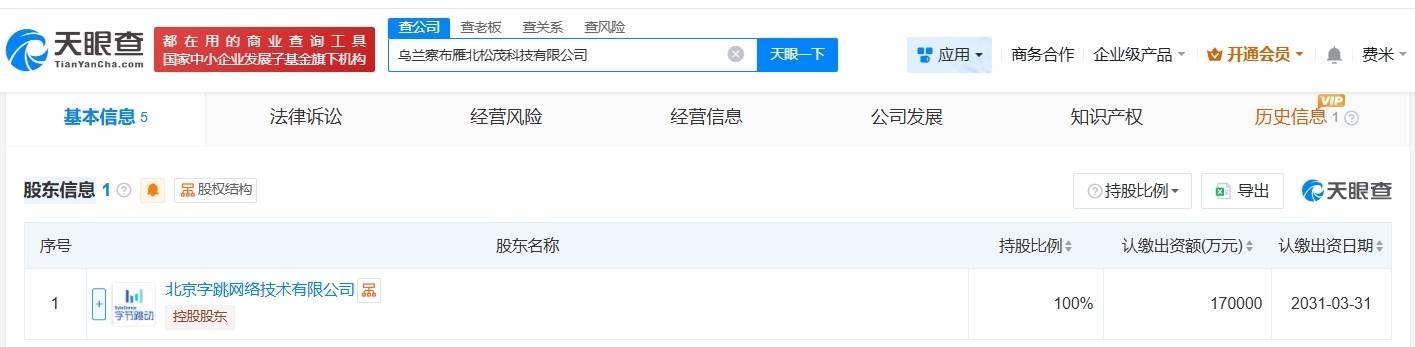 证券配资网站 字节跳动在乌兰察布成立新科技公司